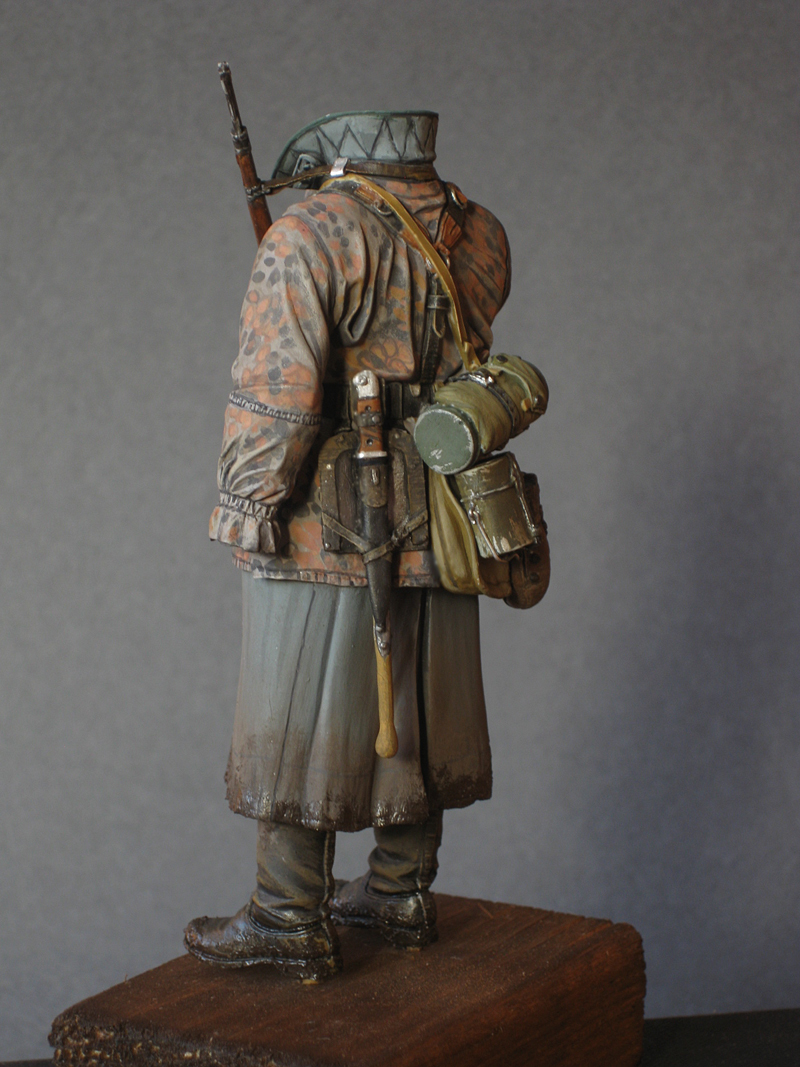 Второй день - рисовал камуфляж и воротник оформил. Рукав правый тоже готов, он отдельно пока, приклеиваться будет после того как винтовку на грудь повешу.