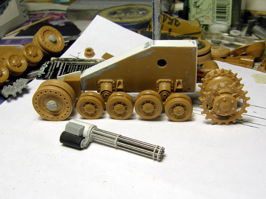 Главное в башню родной ствол не сажайте, а по мощнее чего-нибудь! Да и не забудьте показать когда соберете да покрасите полностью, жуть как интересно что получится