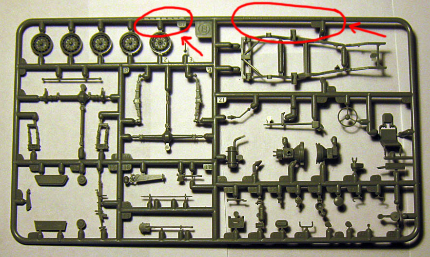Но это не всё. При детальном рассмотрении деталек на литниковой рамке, именно на рамке были обнаружены две детали, назначение которых мне не совсем ясно. Куда их "лепить"- как то в инструкции не ясно...