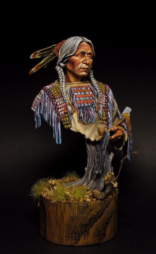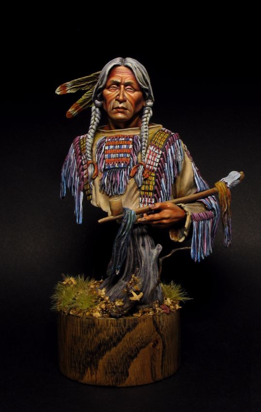 Великолепны РОСПИСЬ и подставка. Сам бюст мне вот, если честно, как-то не очень... - этот индеец больше похож на старую индейскую женщину. Не знаю, может быть так получилось из-за седены на волосах...