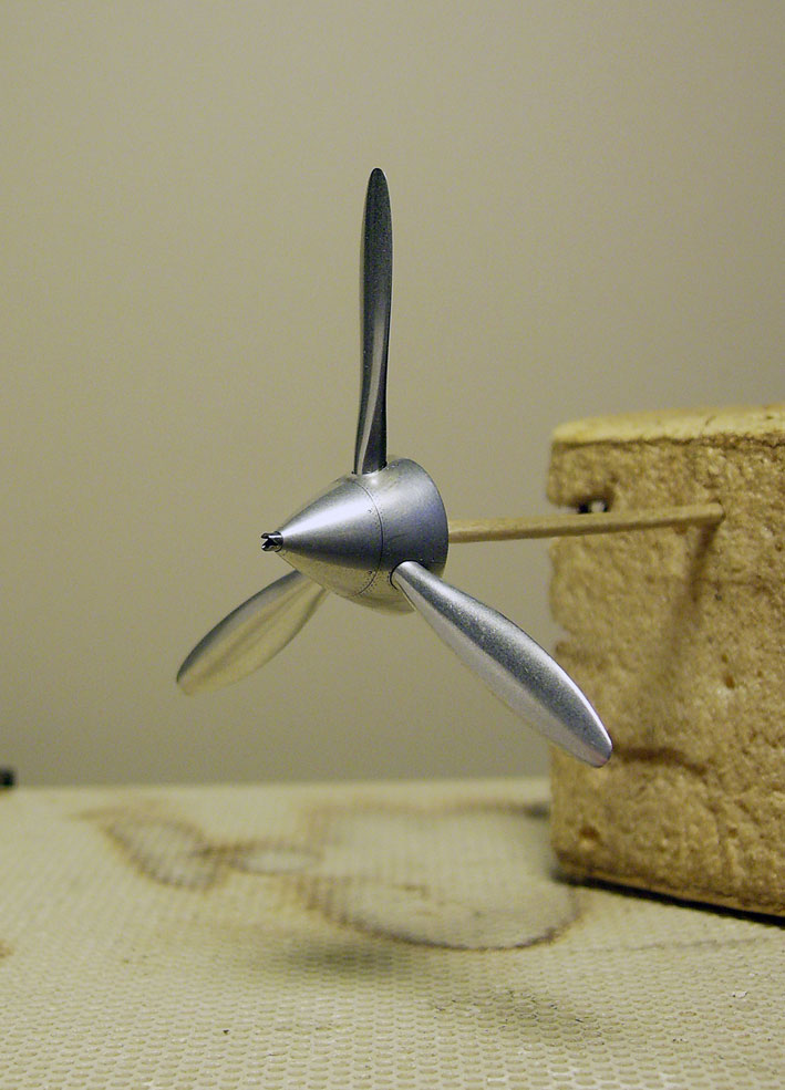 Продолжая "металлическую" тему - винт для МиГ3 1/48 (поздний). Материал - алюминий разных марок (непосредственно кок Д-16Т). Храповик тонирован "Тамиевским дымом". Остальное натуральный цвет (в начале всё заполировано, а далее заматировано до нужной степени). Протонированы заклёпки и потёки.