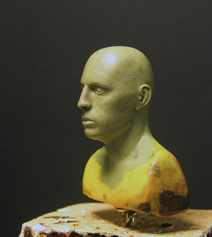 Спасибо за отзывы. Немного скульптуры, будущий бюст 1/9. Термо-пластика Cernit (зелёная) и Premo. Вот кстати - Цернит и Премо запекается прекрасно. Для получения нужного цвета пришлось домешать белый "Сонет" к Церниту (от общей массы примерно 50 процентов), пошли трещины блин. Не катастрофические но всё же.