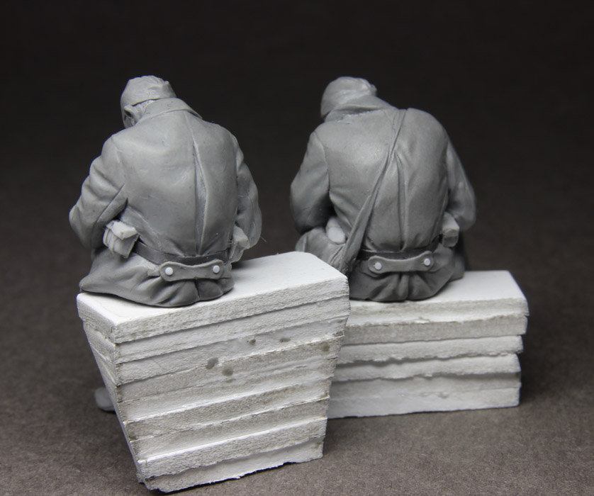 Гм. А почему? Эти фигурки будут выпускаться в смоле. Мои фигурки, конечно, не Звезда, которая в каждом сельмаге продается, но заказать через Интернет их можно запросто. Стоят они, как и другая смола, отностительно недорого, тем более для среднестатистического моделиста, который не больше одной диорамы/виньетки делает за полгода (а зачастую и за год).
