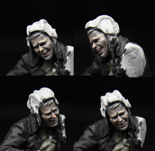 Например, вот мой вариант лица танкиста. В противовес, так сказать, огромному массиву чистеньких танкистов, которых так любят красить моделисты.