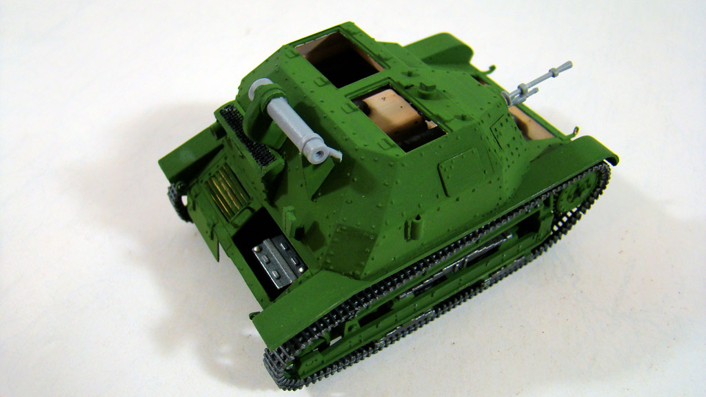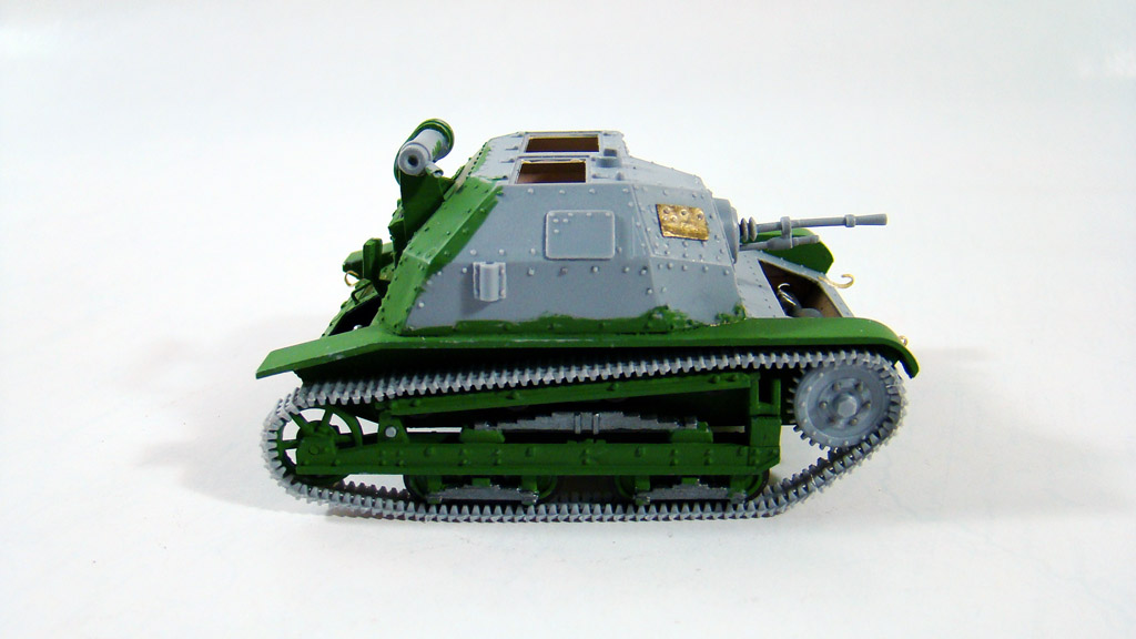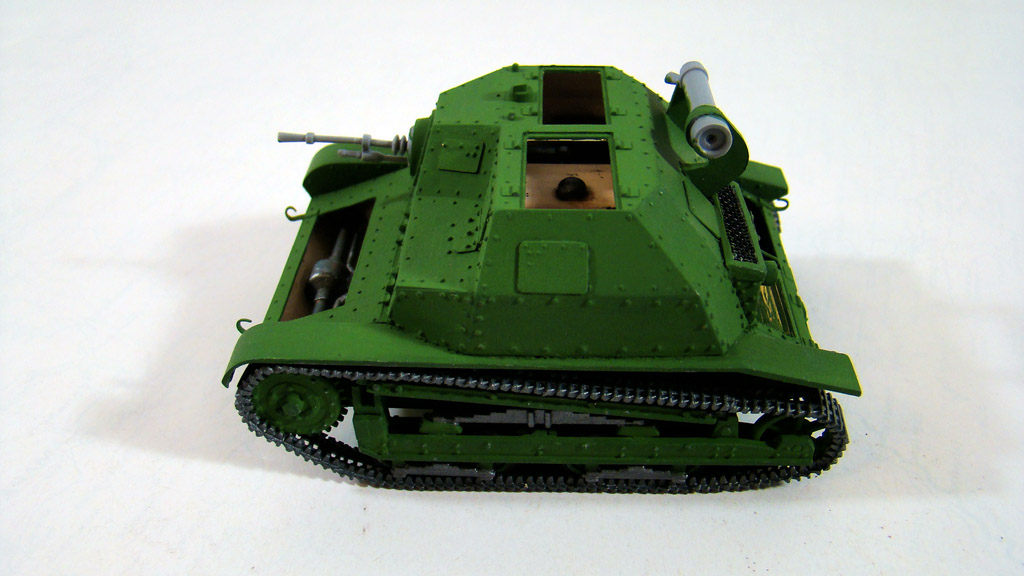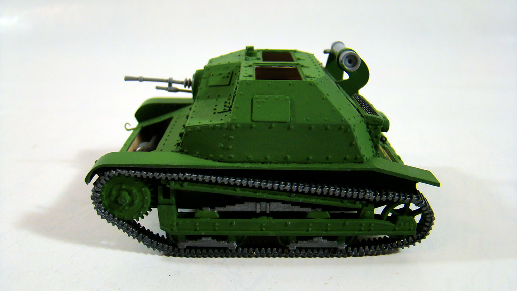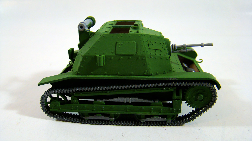 Дальше модель была выкрашена в зеленый цвет, после были покрашены и траки , кстати траки красил Оружейным металлом нитрой Хобби так как она намного более надежней сидит на пластике.