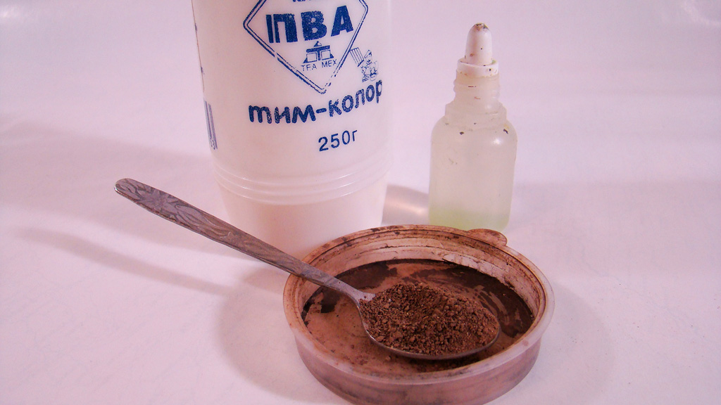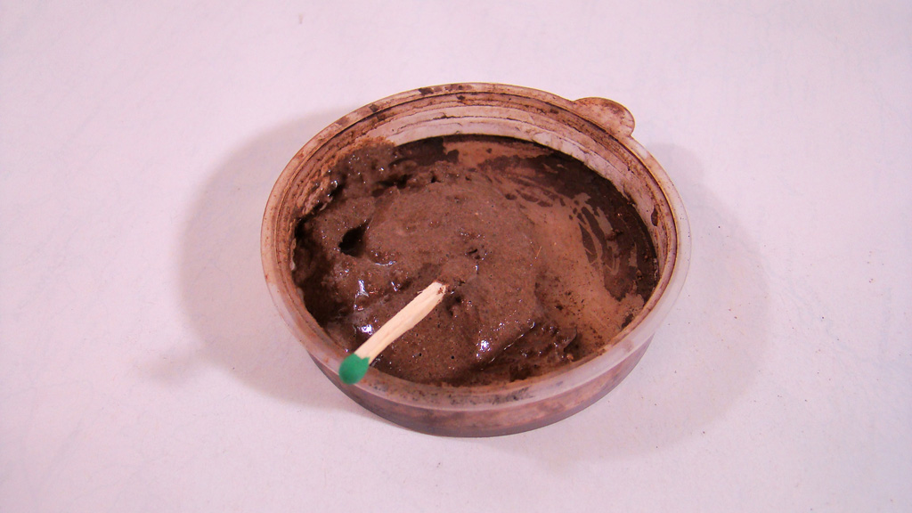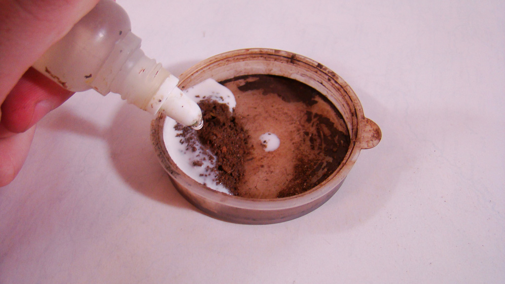 Теперь немного о загаживании гусениц методом который у меня уже стал практически постоянным. Берем землю, пва и воду, смешиваем.