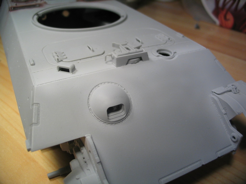 На маске орудия сточил две бонки для крепления ИК прожектора, затем востановил имитацию литья.