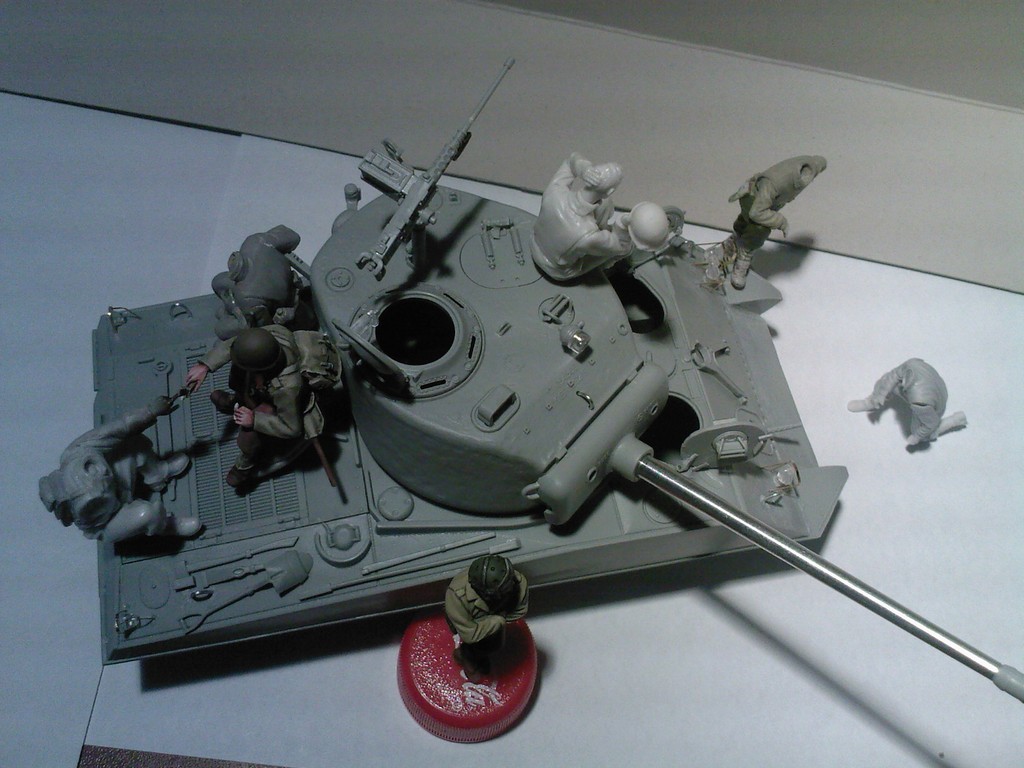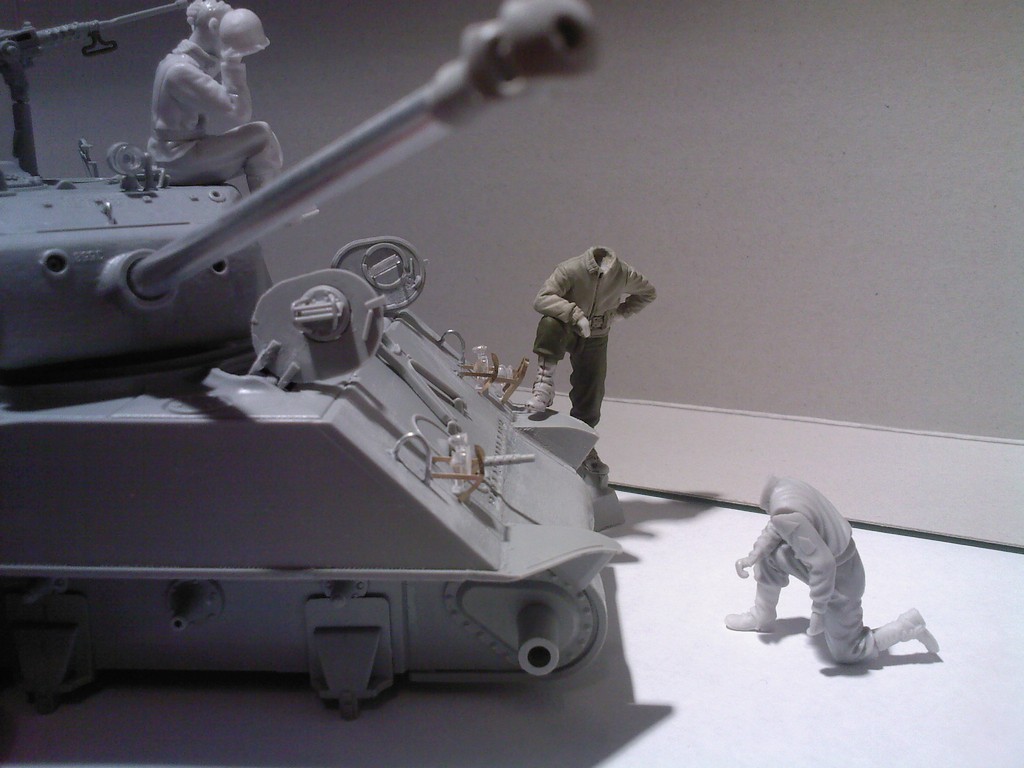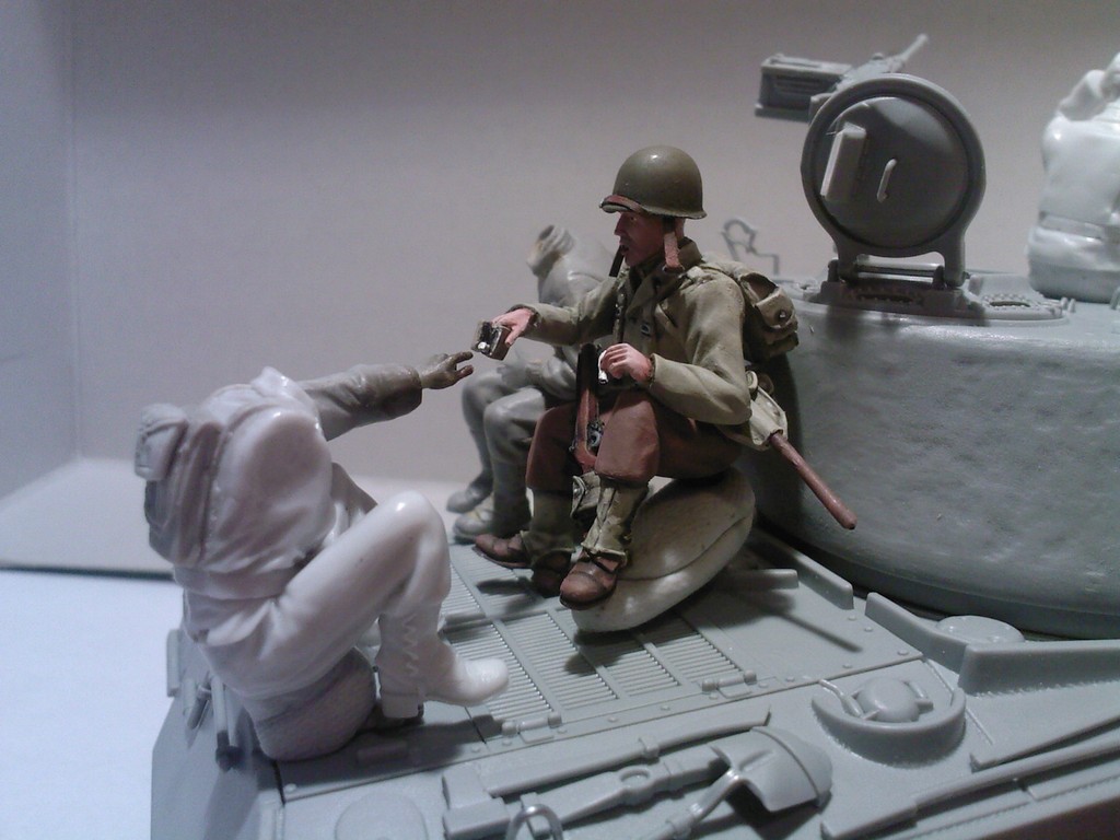 Продолжаем делать диораму. Шерман от Дрегона, перелепленные бойцы от миниарта, верлиндена и других производителей. И небольшая зарисовка с будущей диорамы.
