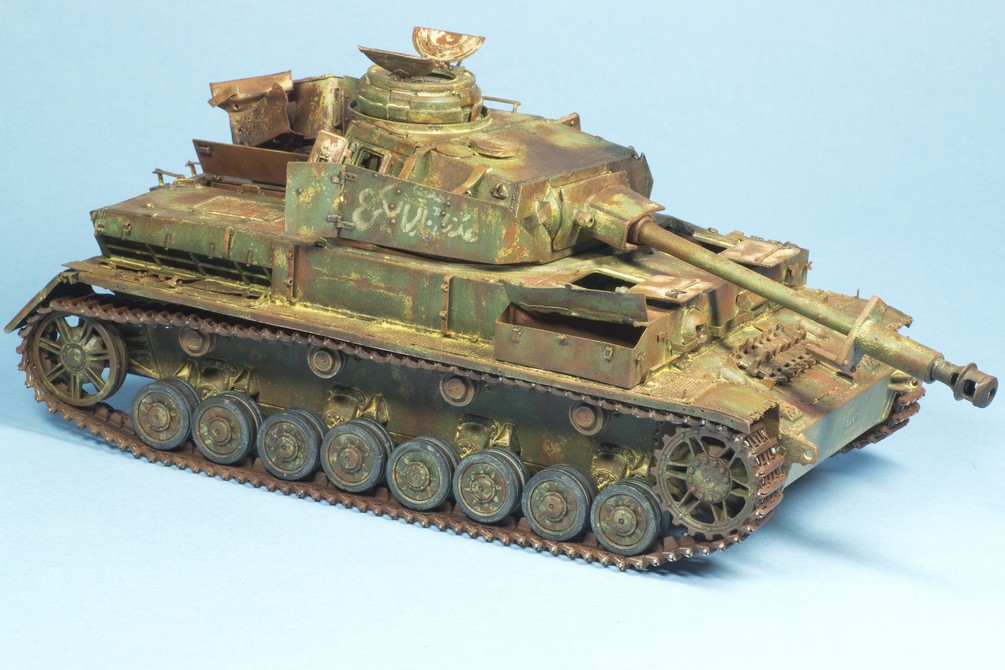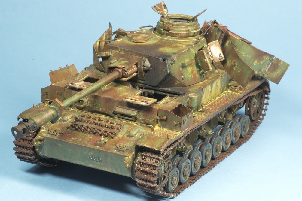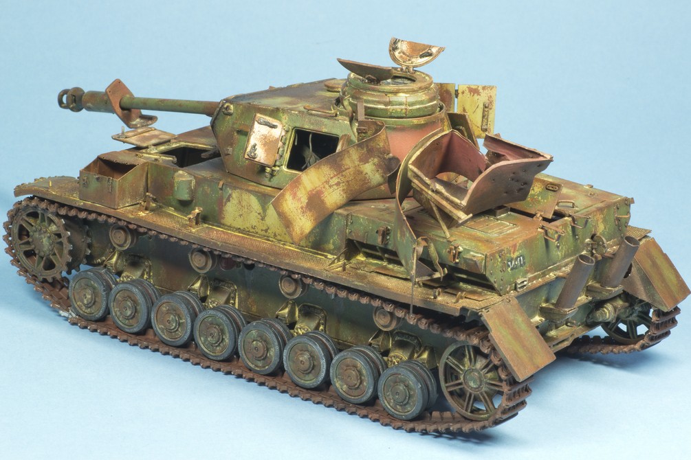 По крупному, закончил "ржавление" корпуса и башни. Использовались масла и жидкости от MIG и AK. пространство под полками дополнительно затемнил тамиевским Smoke.