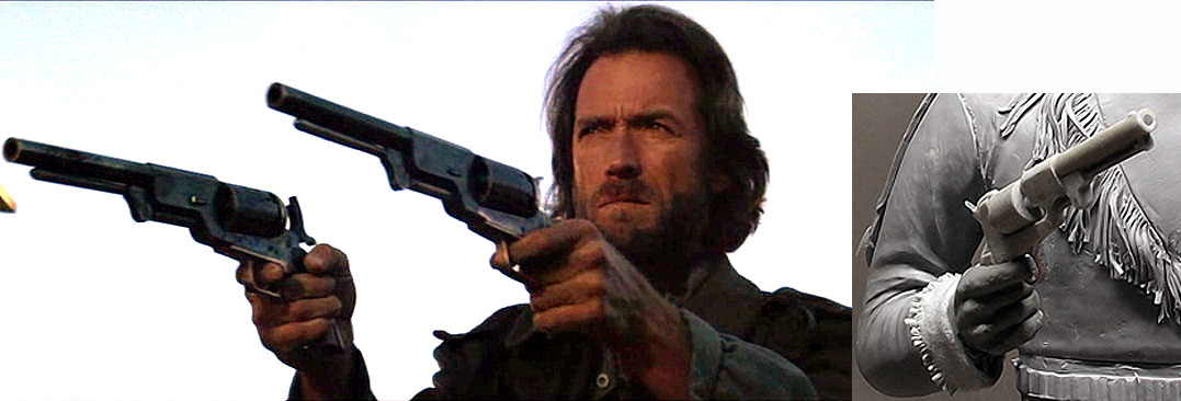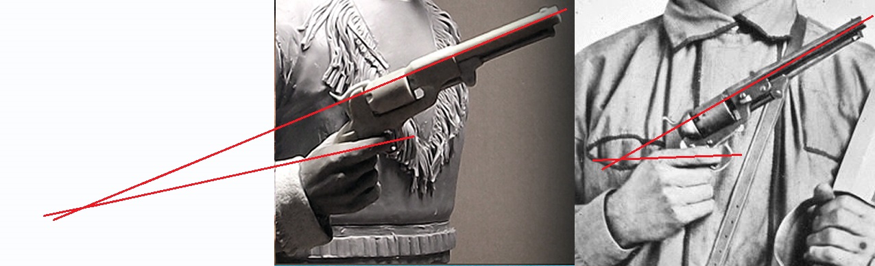 Проще говоря, такой хват оружия, как сделано у Вас, характерен для более современных образцов револьверов, но не для той модели, что показана в скульптуре.