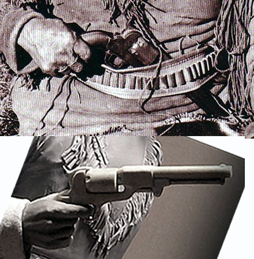 Если я правильно понял, Вы попытались сделать Colt Walker. Но, в этом случае хват правой руки должен быть другим. Обратите внимание на расстояние между указательным пальцем и барабаном.
