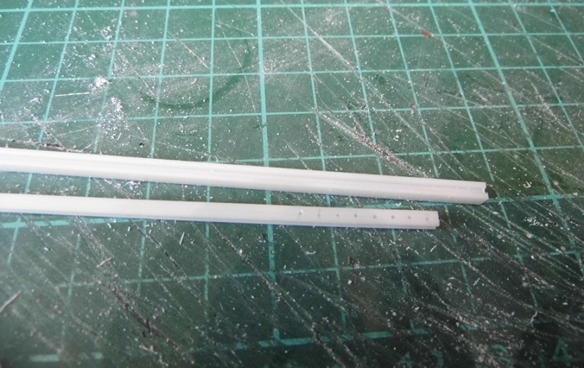 Наша консоль по длине 4,75м. Переведем в 35-й масштаб и получим 13,5см. Консоль имеет в конце 8 отверстий с шагом 100мм.