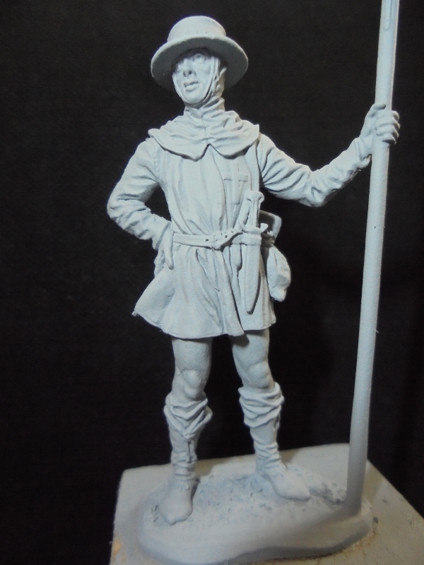 День добрый!Сегодня немного ботаники,но полезной.Кстати к книге по покраске варгейма прилагается двд-диск,забыл написать.Но я о другом.На прошлой неделе решил все таки посетить магазин в Москве"Лейб-компания".Лет шесть назад первая попытка была неудачной,на этот раз более внимательно изучил карту в яндексе(магазин на ст"Сокольники"за"Зенитом").Тут начинается детективная история.В апреле-месяце появился сайт этого магазина,назывался"Дом моделек",где я и заприметил миниатюры"Ромео м."и"Пегасо м."по смешным ценам.В августе сайт глюкнул.Так вот,как только я зашел в магазин,спросил у продавца насчет сайта.Тот чуть не матом заорал на меня,что у них нет сайта и никогда не было.Витрина с солдатиками в магазине небольшая,выбор маленький,но я сразу заметил свои любимые"киты"на самой верхней полке в заднем ряду,покрытые пылью.Цена 900р-54мм,1700р-75мм,всадники-2000р.Продавцу неохота было доставать лестницу,но,видно,желание избавиться от ненужного мусора пересилило.Выбор небольшой,но цена и качество,кому надо,съездите.Еще взгляд остановился на"народных"фигурах"Кастингс",возникло ощущение,что фирма стала лить лучше,качественнее.Поэтому взял вот этих пять,выбирал по лицам(епископа уже для ровного счета)Все по 200р.Да и у них вообще там большой выбор именно хороших фигур из металла.Я был поражен качественными с мельчайшей деталировкой отливками конных"китов" от известных фирм(цена-2000р).Берите на заметку.На данный момент работаю с основанием под свою виньетку,это на долго,поэтому для разнообразия буду расписывать купленные фигурки.Первого загрунтовал швейцарского пехотинца на 14 век.Без шпаклевки и напильника конечно не обошлось.Всем удачи!