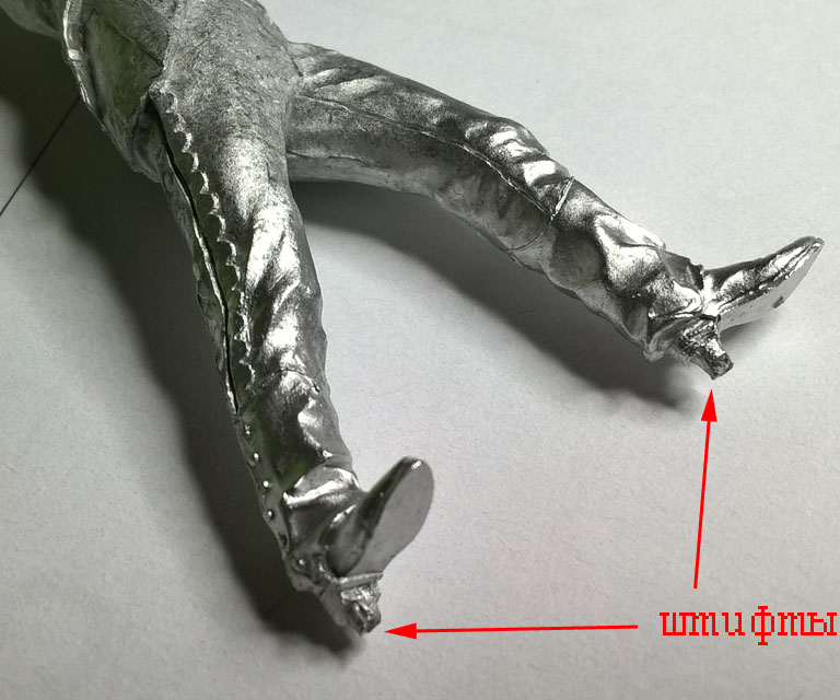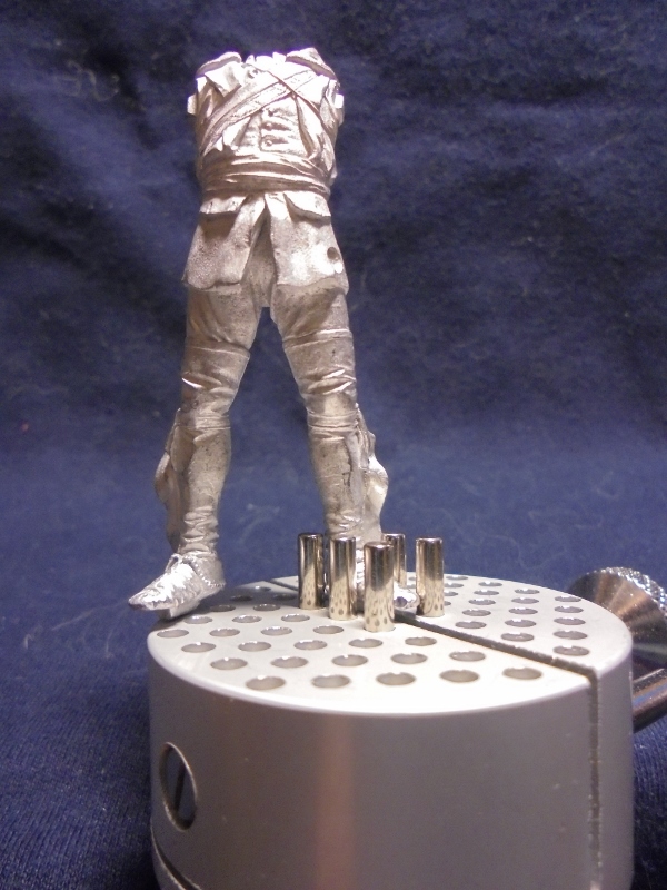 Вот на фото штифты в мастер-модели и штифты у ног отливки, причем вероятнее всего у отливки я штифты обрежу, засверлю в каблуках отверстия под стальные штифты, и их буду зажимать в держатель.