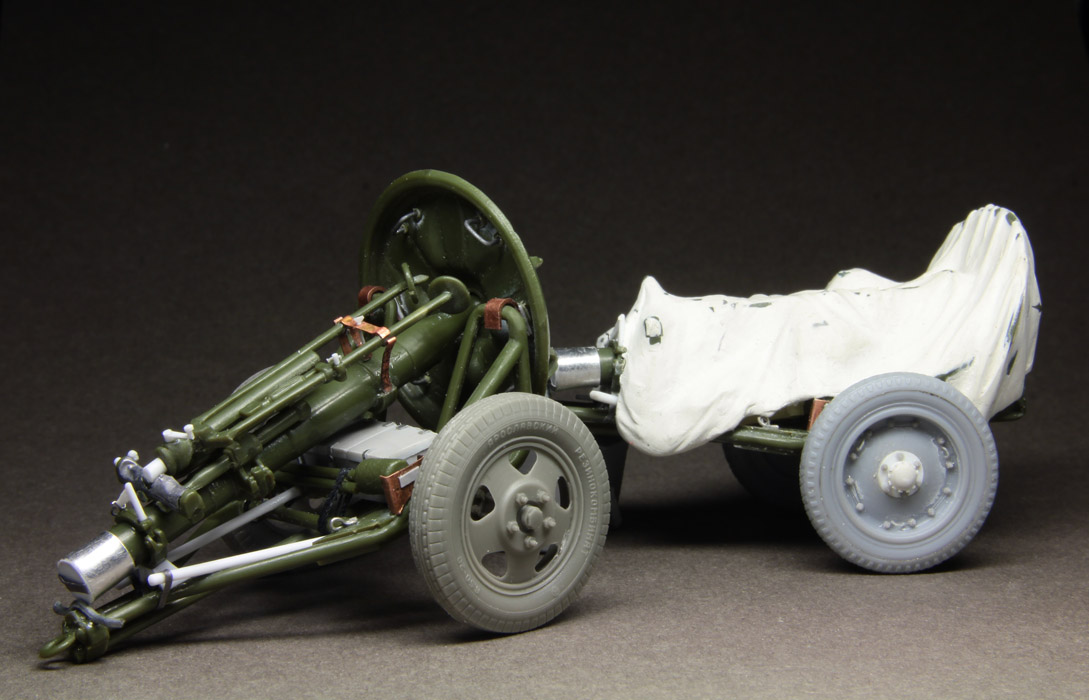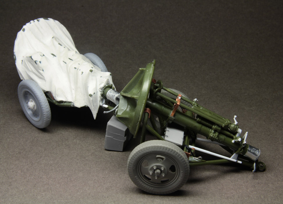 Задачи убиться насмерть при доводке минометов не было, всё-таки они только фон для фигурок, но доработок сделал немало. Колеса Мастерклуб и доработанные от 76 мм полковушки Алангера. Как частенько бывает в таких случаях сделал много дурной работы скрытой под брезентом.