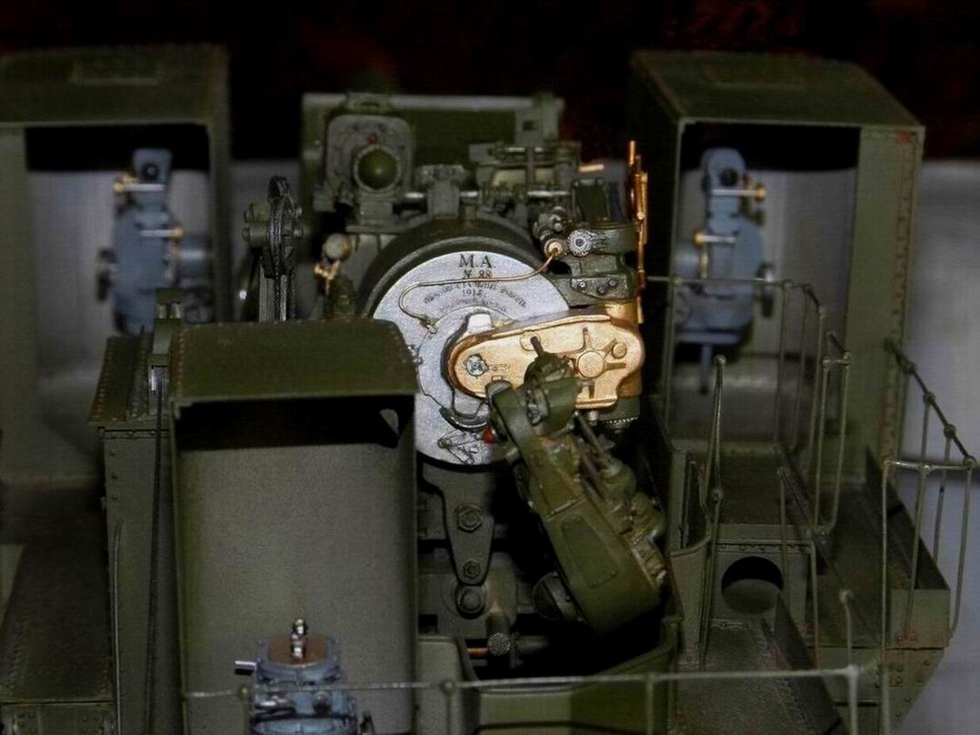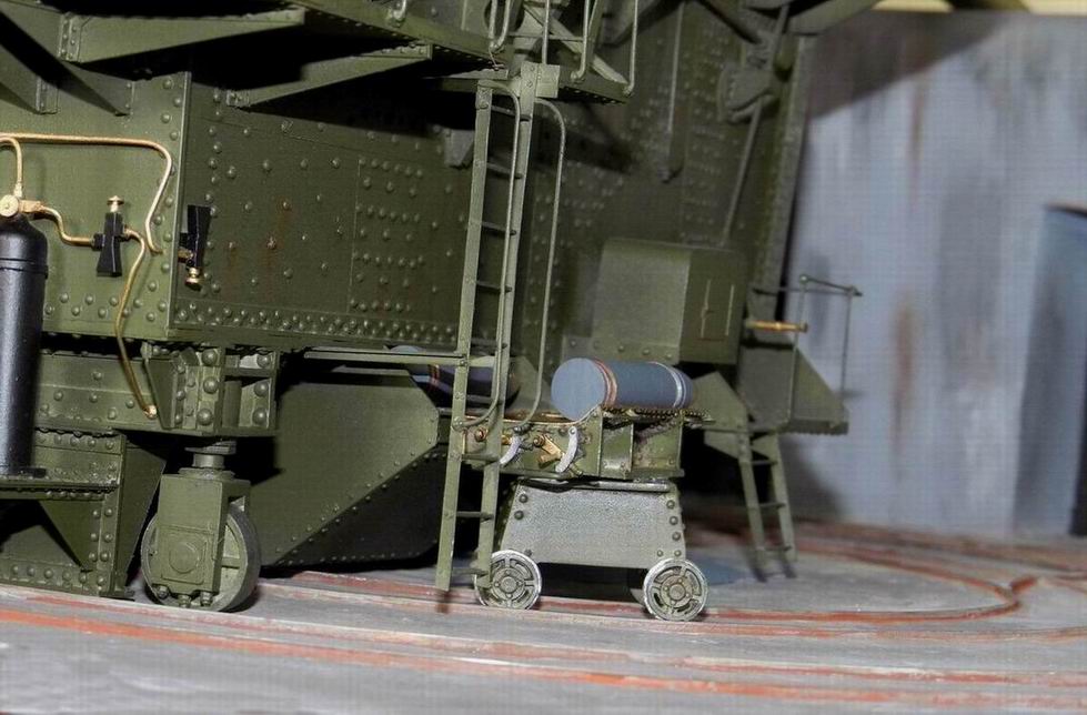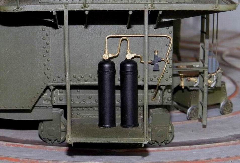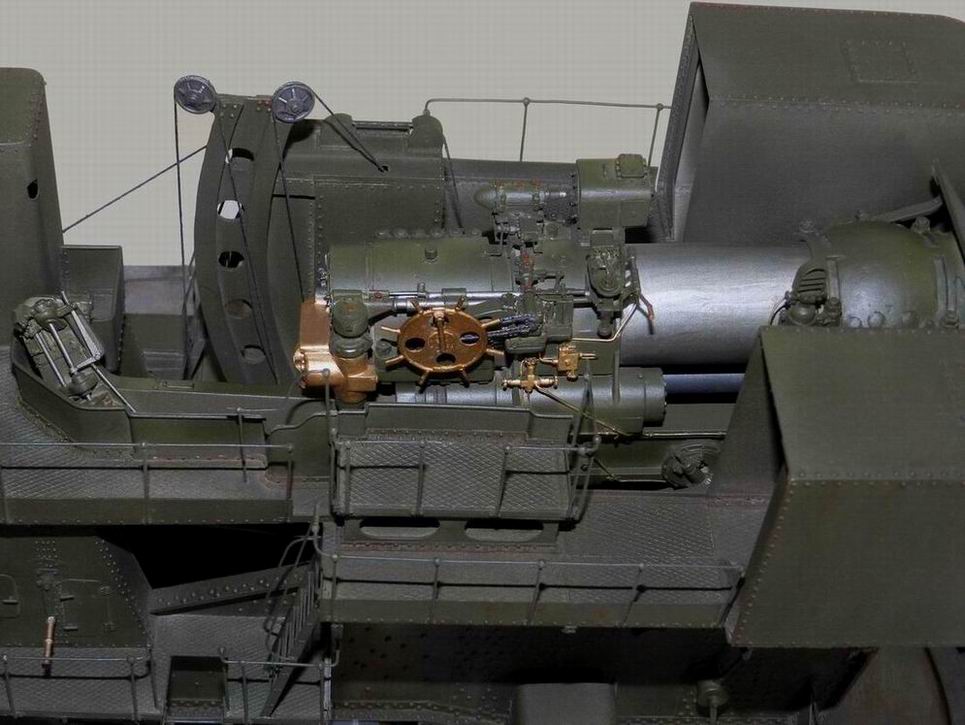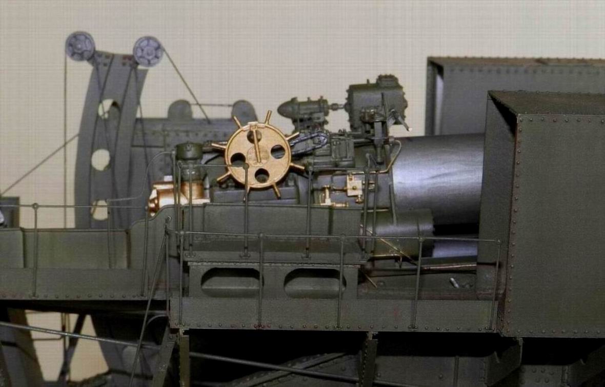 После некоторых колебаний по поводу выкладывания фотографий, решился всё таки выложить. При покраске задолбали меня все эти трапы, поручни и апрочее. Хорошо молоток далеко лежал. Но вот худо бедно открасил и показываю. Главный посыл, модель довольно редкая, надо бы показать.Снаряды, как и колёса на тележку презентовал мне Дмитрий Гуреев (dpl). Я на них добавил медные и стальные пояски.