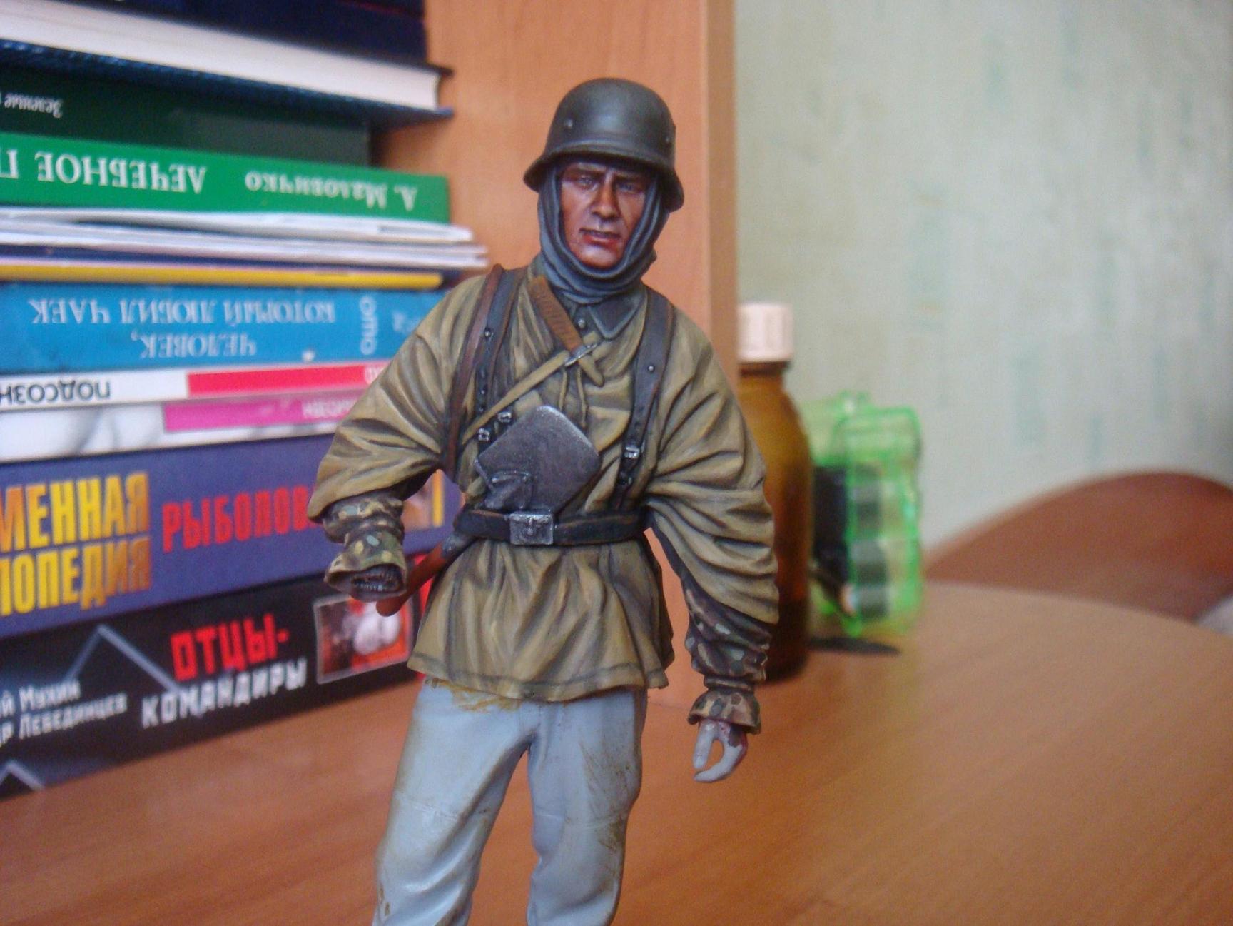 Костет, да возможно было бы логичней, но ведь в первую очередь мы моделисты исходим из соображения красоты и черезчур загромождать фигуру тенями не стал, к тому же на груди и так добольно много теней ведь на фигурке бинокль знаки и т.д. тем более делается немец под небольшую диорамку поэтому во избежании резких контрастов с будущей работой пытаюсь сохранить выгаревший цвет формы. Спасибо за замечания возможно пересмотрю свою точку зрения.