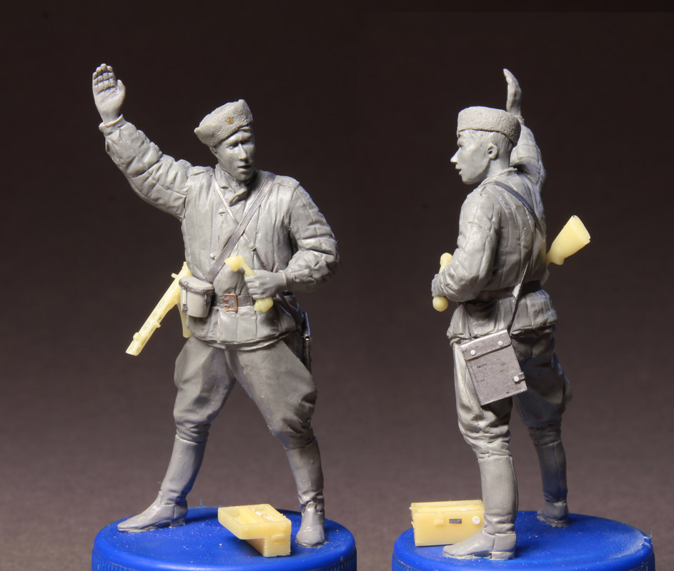 и командир будут идти отдельными фигурками. У командира телефон УНА-Ф-42, типа он огонь с корректировкой ведет, но кроме этого у фигурки будут дополнительные кисти рук с сигнальным пистолетом в правой и биноклем в левой руке и дополнительная голова в фуражке.