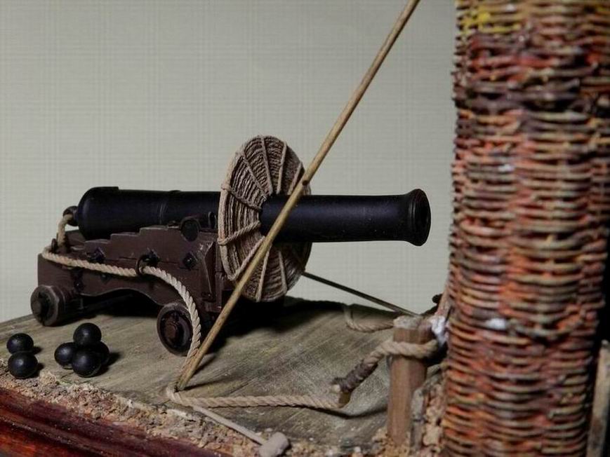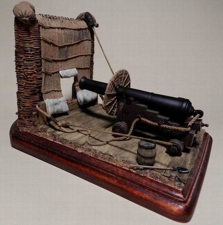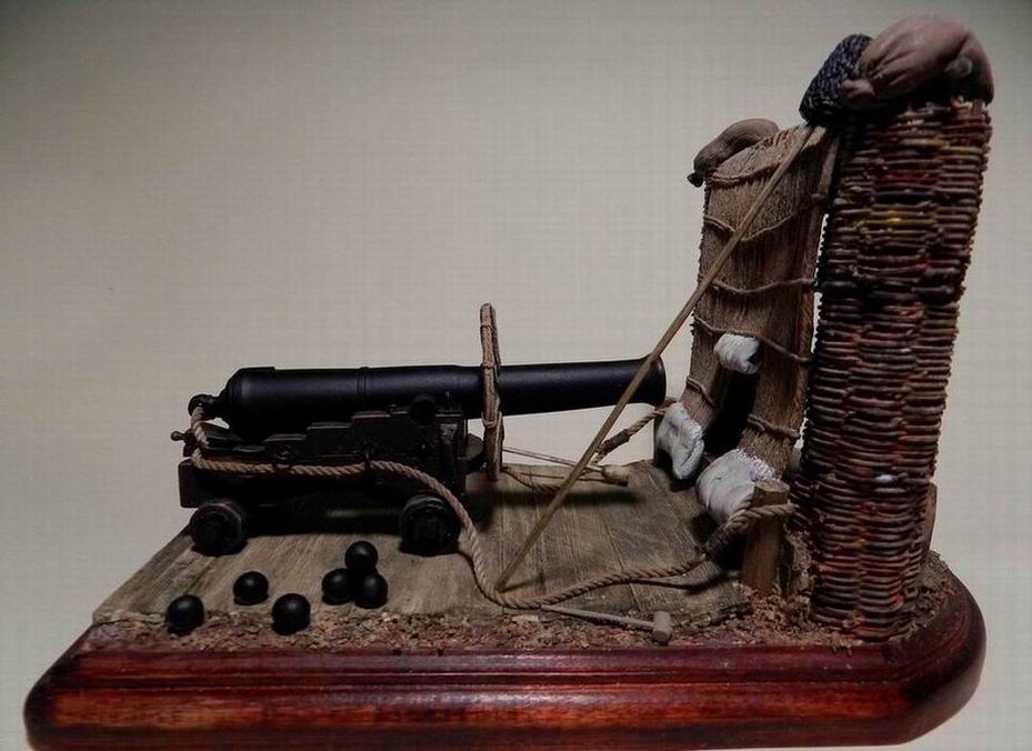 Пока занимаюсь изгтовлением следующих чертежей собрал модель 24-фунтовой морской чугунной пушки обр.1833 г. Они применялись в обороне Севастополя в 1853-56 гг.Модель в М1:30 выпущена фирмой "Chronos Miniatures". Первоначально хотел собрать модель просто на подставке. Но потом увидел английскую фотографию русских позиций и решил сделать нечто подобное.