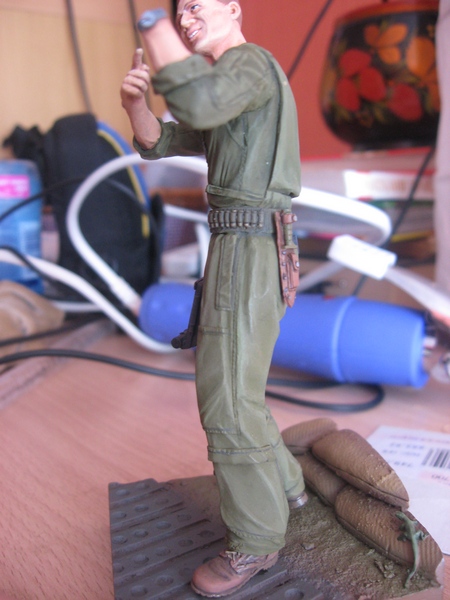Опять 16-ый масштаб. На этот раз Американский пилот на Вьетнам. Фигурка почти закончена осталось поставить на место культи кисть с летным шлемом и оттонировать прическу и голову вокруг неё. Работа делается не себе поэтому не искал практически никакой информации. Время работы над фигуркой вчерашний вечер и часть ночи поэтому качество соответствующее. Сильно не бейте :helmet: