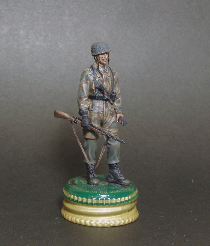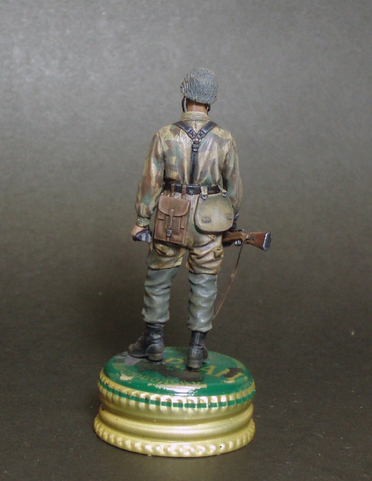 Дмитрий Шишков, понимаю Вас, давольно сложный тип камуфляжа. У Вас получается весьма достойно!С цветами на мой взгляд угадали, рисунок тоже неплох, когда покроете фигурку лаком он будет четче читаться, сейчас пока он трудноразличим из-за блеска.Еще сеточку на каске можно подчеркнуть более светлым тоном.