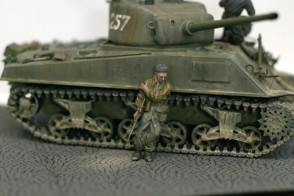 Решил сделать диораму, мол наших танкистов и пехоту в городе застигли в расплох и обстреляли.