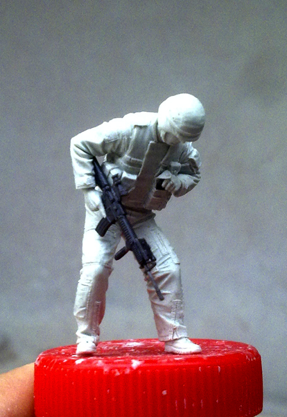 Менелай, на приведенном Вами фото боец не только пригнулся, но и съёжился, голова втянута в плечи. У Вашей фигурки спина прямая, шея вытянута, подбородок приведен и образовался большой зазор между нижним краем каски и воротником, поэтому выглядит как-то не так. Впрочем, кому надо, легко перепилит, в остальном все как всегда - на высшем уровне. С Наступившим и дальнейших успехов в Новом году!
