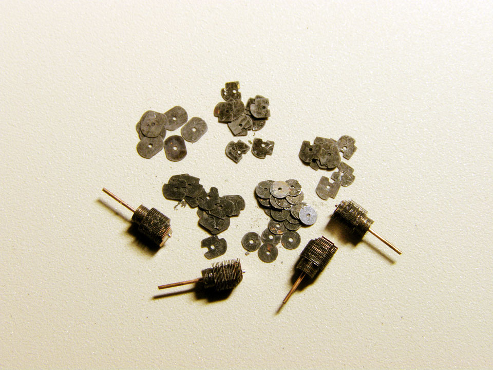 Набранные цилиндры для двигателя 1/72. Высота без центровочной оси - 3.2мм. Толщина каждого медного ребра 0.04 мм. Травление выполнено самостоятельно, хочу выразить благодарность участнику Никой за предоставление инфы о технологии травления. Макет рисовал товарищ. Вот только чернение подкачало, передержал. Приклеивалось эпоксидкой, то-есть между каждым ребром наносилась капелька клея и придавливалось друг к другу. Таким образом получился проклеенный "пакет".