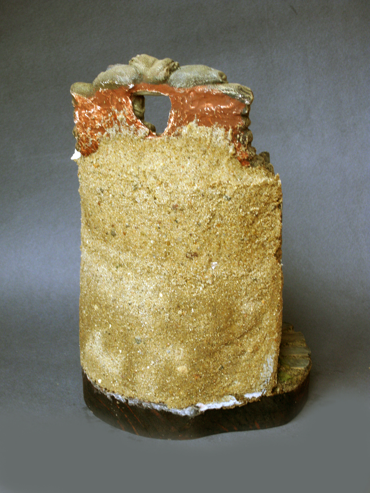 - заливка тыльной части : лист тонкого картона (обложка тетради) выполняет роль опалубки ; нанесение смеси будет в три слоя с разницей в сутки примерно ; на последний верхний слой непосредственно будет крепиться отливка с мешками