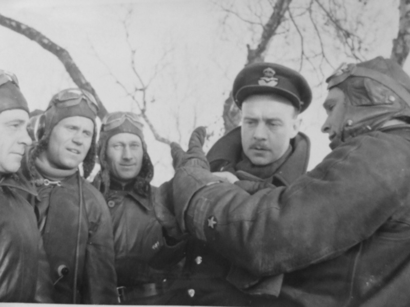 Сереж, вот седня чето бросилась фотка в глаза. Смотри как крабы расползаются по фуражкам: "Группа летчиков (справа налево): старший политрук орденоносец Н.П.Иванов беседует с лейтенантом И.И.Лебедевым, лейтенантом орденоносцем В.П.Рысенко и старшим лейтенантом орденоносцем Д.П.Калининым, принятыми в партию во время войны. ВВС КБФ, 07 июля 1941 г."