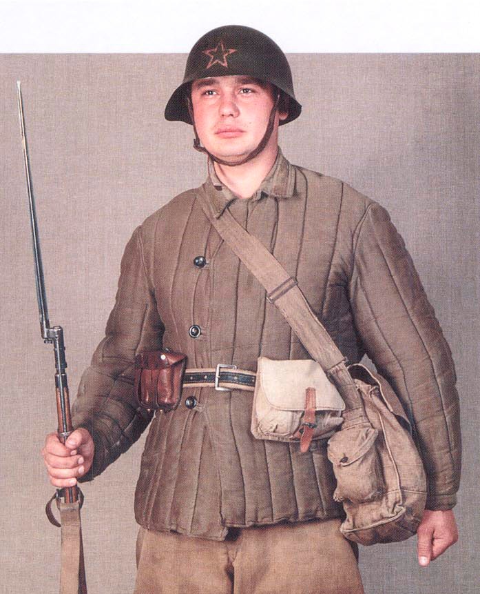 Андрей Климанов,мне кажется,что скульптор изобразил на бойце,телгрейку