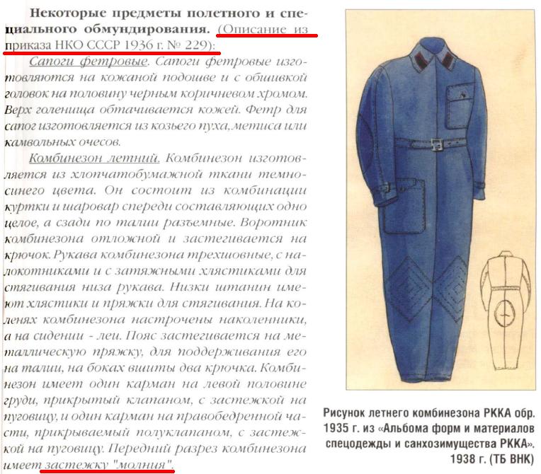Особое внимание обратите на текст и фотографии к параграфу "Комбинезон летний образца 1935 г."...