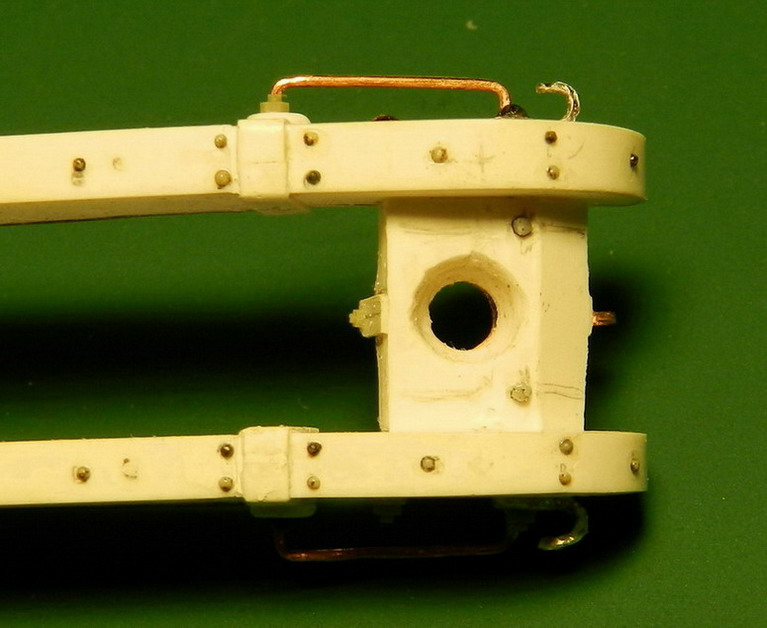 SKL, Вы правы, на целых 0,5 мм. разница. Но учитывая, что хобот батарейного лафета как раз этим местом будет приклеен к подставке лучше заклёпки совсем убрать. А вот подушку подправил. Когда клеил лстик полистирола изображающий оковку, немного края выступили за пределы границы. Причём под углом. Подрезал и зашлифовал сразу, чтобы не забыть. Спасибо, что обратили моё внимание на это.