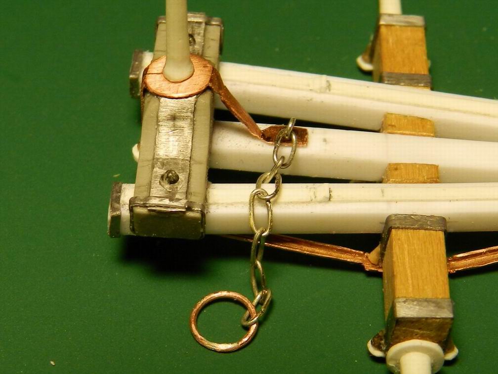 Сделал передковую цепь. Пришлось паять из проволоки. Такой формы и размеров цепочки в своих запасах не нашёл. А вот серебряную цепочку для стопоров правил нужного размера нашёл.