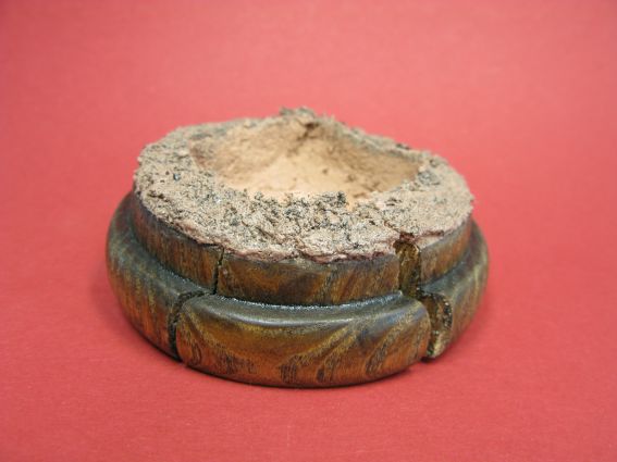 Нужно было подставочку в районе нанесения земли покрыть, к примеру, тонким слоем эпоксидки - застыв она бы не дала влаге промочить дерево.