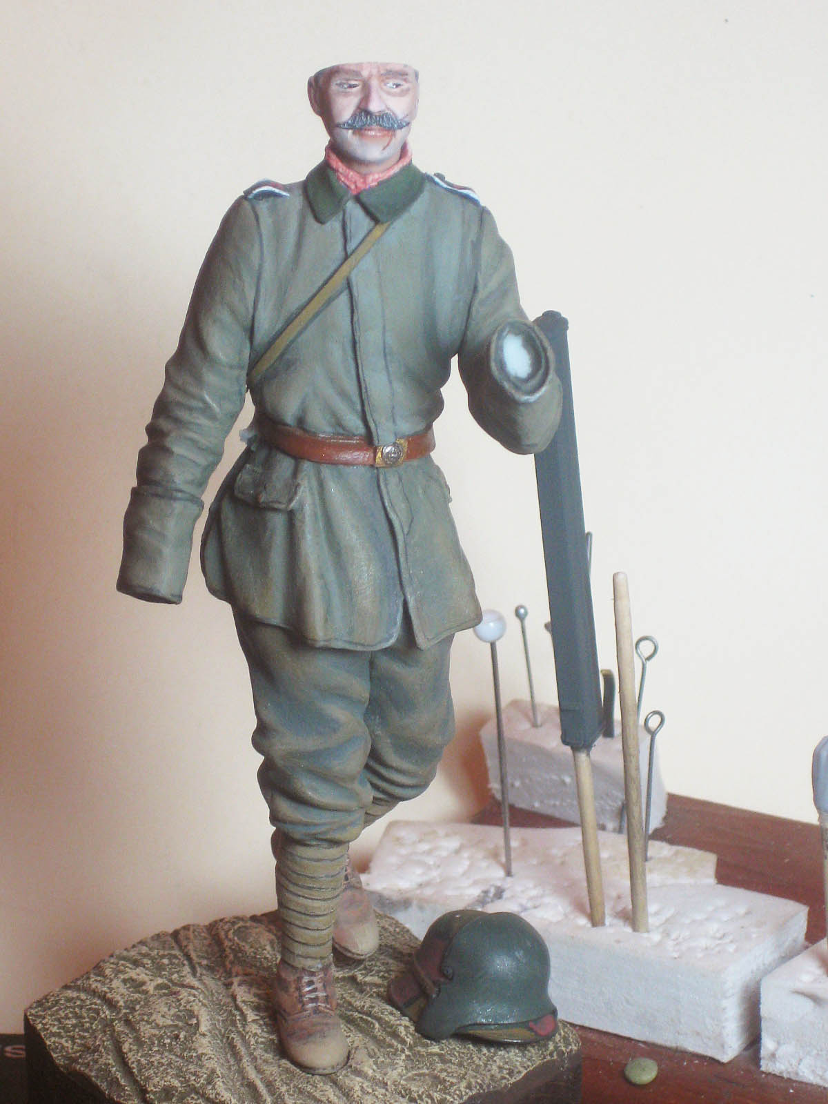 Дим , приказ о чернении кожаной амуниции у немцев был ? Был. В 1915 -м году. Стальной шлем в замену пикелям пришел в 1916-м году. Уже год. Приказ о витражном камо был емнип летом 18-го . Еще два года. В итоге три года. Допустим что боец воевал с 14-го. Мог ли у него сохраниться коричневый ремень за четыре года ?. В принципе мог , но на мой взгляд , уже к концу войны все-таки у большинства была черненая амуниция.