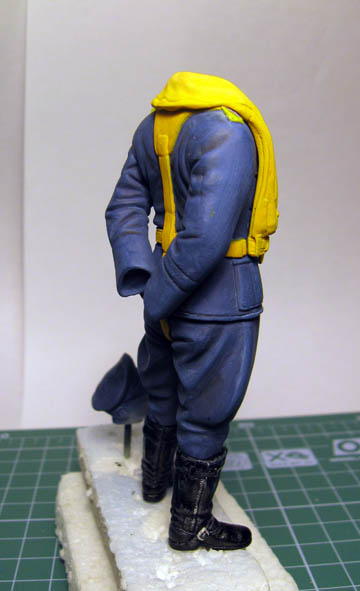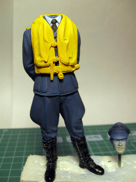 после продолжительного обсуждения, мне не понравилась сама идея одевания лётчика как"капусты"... Мало того вырисовывалась "из-под пятницы-суббота"- из-под куртки виднелся китель((( но ладно это, так ведь сверху ещё одет спас-жилет... Конструкция громоздкая и какая то отчасти не правдоподобная. Я не нашёл ни одной похожей фотографии или рисунка - то есть что бы эти три элемента присутствовали СРАЗУ вместе...