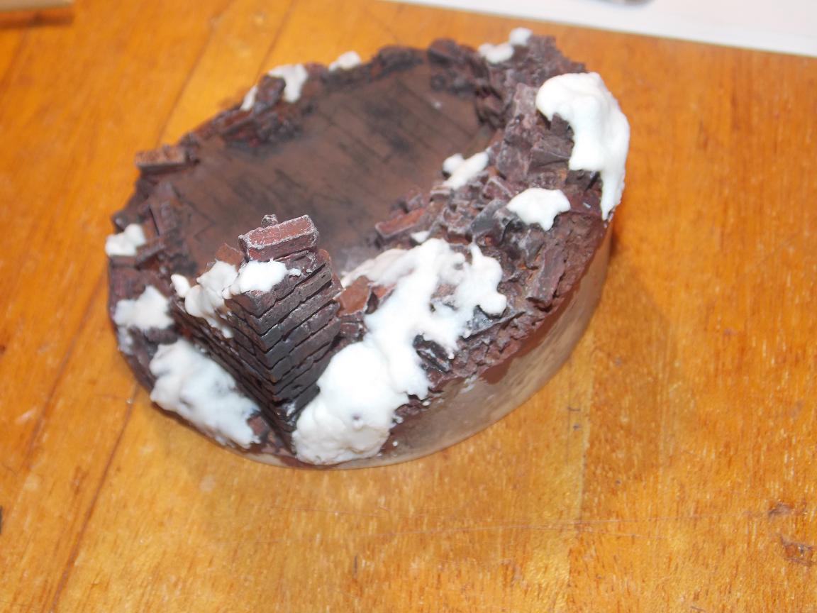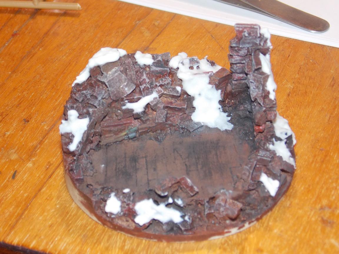 Ну раз так, тогда те участки вообще можно было бы и не красить. Смолу снегом присыпать, и всё. А в дальнейшем предлагаю фотографировать какой-нибудь кирпичик, а остальное в Фотошопе закрашивать.