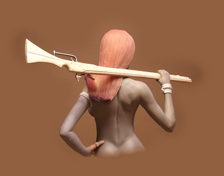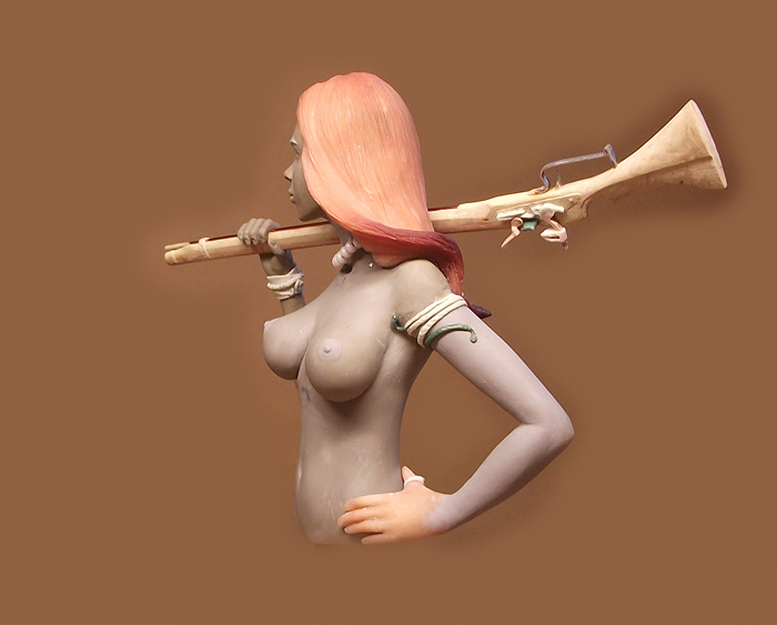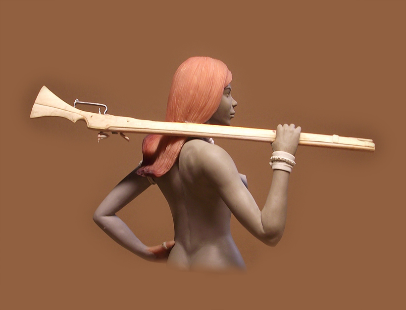 Бюст собран на кусочках пластики, для фотосессии заказчику, отсюда такой эффект, а в итоговом варианте ружье конечно не висит в воздухе. По поводу признаков это да, но это уже в процессе перерешалось.