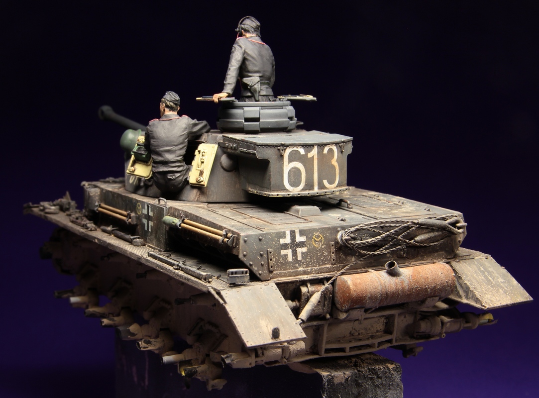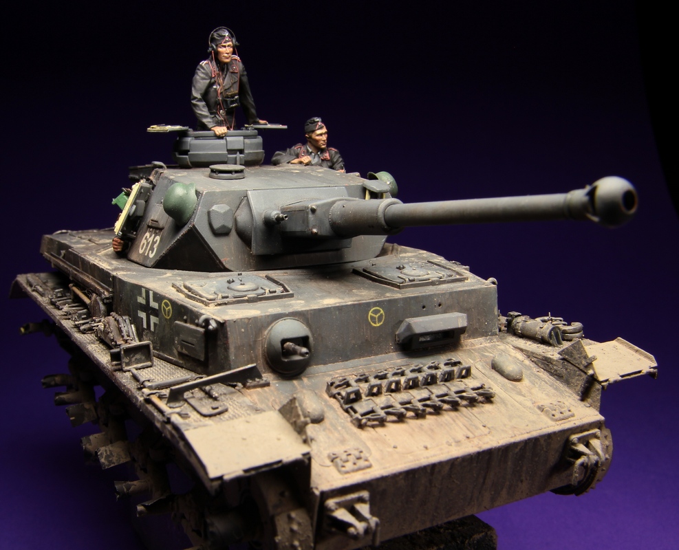 Танк ещё не до конца затонирован. Нужна ещё мокрая грязь (это уже по месту на диораме) и, возможно, ГСМ-подтери и общее запыление из аэра.