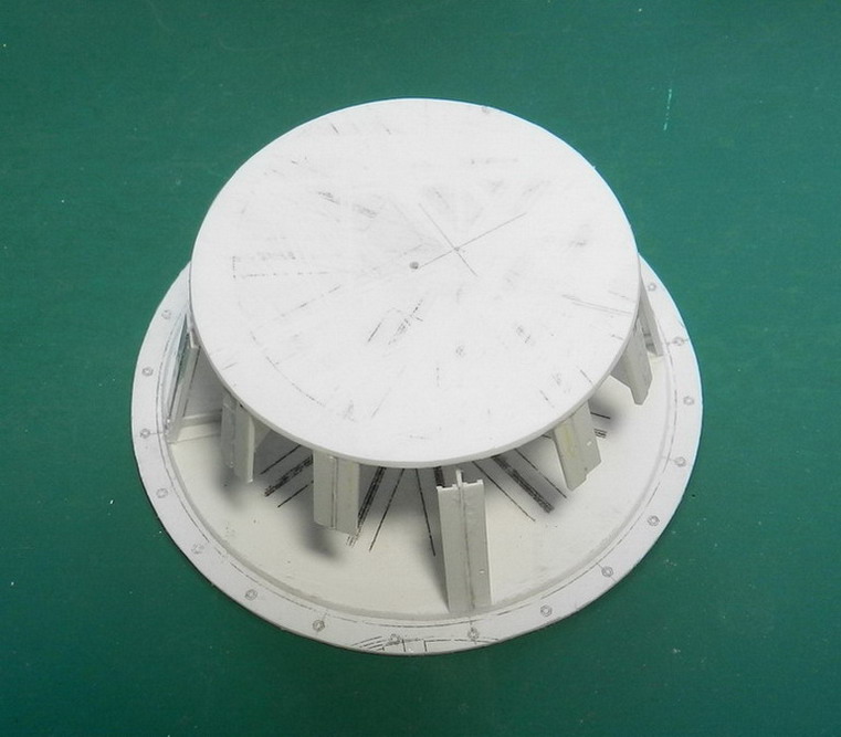 Пока выклеиваю тумбу, изготовил верхний установочный круг и сделал имитацию поворотного круга. Станок будет вращаться на 360 град.