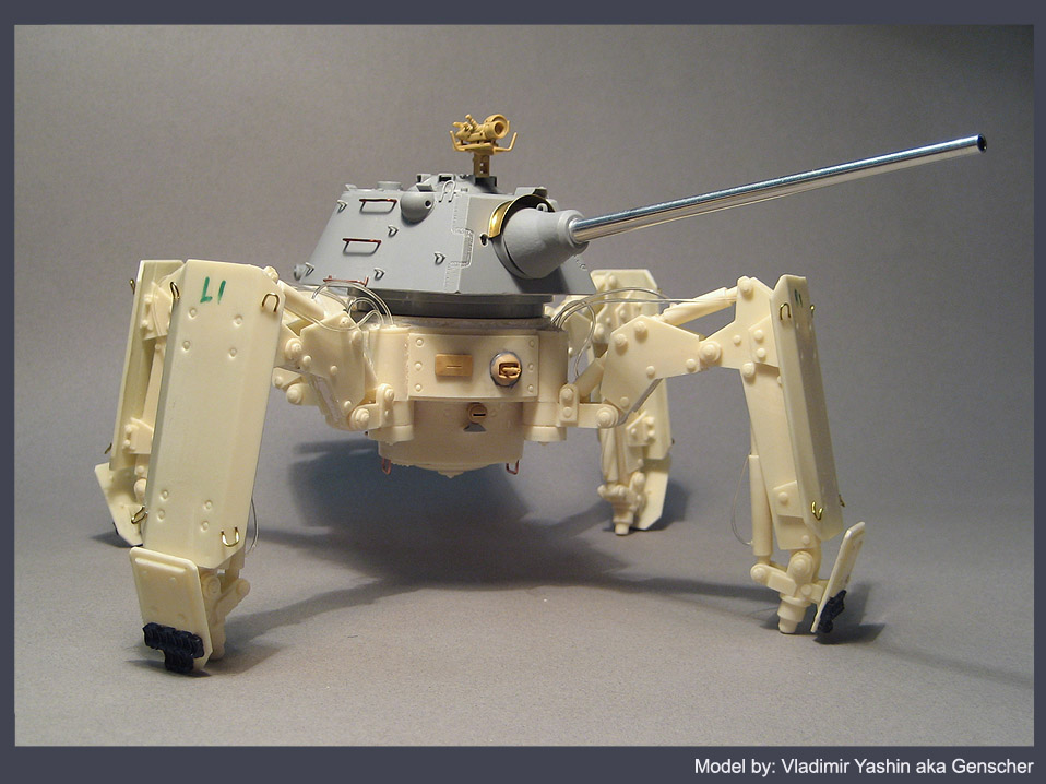 Ну вот, наконец, он готов к окраске. Для придания "немецкости" были добавлены детали от нескольких моделей немецких танков.