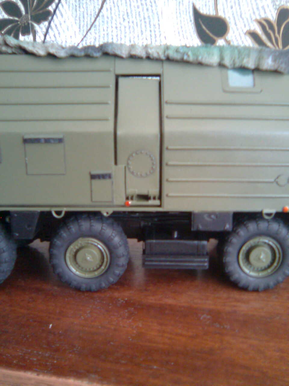 И кстати, по МОБДам, учебный у нас на военной кафедре был, на сколько я помню, однотонный зеленый, а вот в дивизии и пусковые и МОБДы и "кроны" были все камуфляжные. Причем камуфляжи были разнообразные. И, если меня память не подводит, защитный/серый/желтый и защитный/какой-то почти розовый/серо-голубой и защитный/травянисто-зеленый/коричневй(сурик?)/черный. Причем, когда я спросил офицера дивизии почему так аляповато машины раскрашены - эта ж окраска совсем не камуфлирует и что есть же стандартные схемы и краски, то он ответил что специальная краска ушла, ну... на другие цели. А когда надо было срочно перекрашивать, то взяли ту краску что была под рукой.