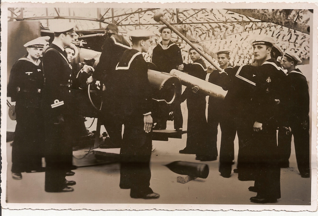 dpl, а моряками других стран (в частности, стран Оси) ты случайно не интересуешься? А то вот фотка наших разведчиков-черноморцев заинтересовала - что за тельняшки на них (ясно, что не советские)? Порылся в литературе - вроде ни у немцев, ни у итальянцев, ни у румынов, ни у хорватов полосатых тельников не было... Да и знак МП на рукаве явно или самодельный, или позаимствованный с каких-то эмблем вышеперечисленных противников, в советском флоте таких не было...