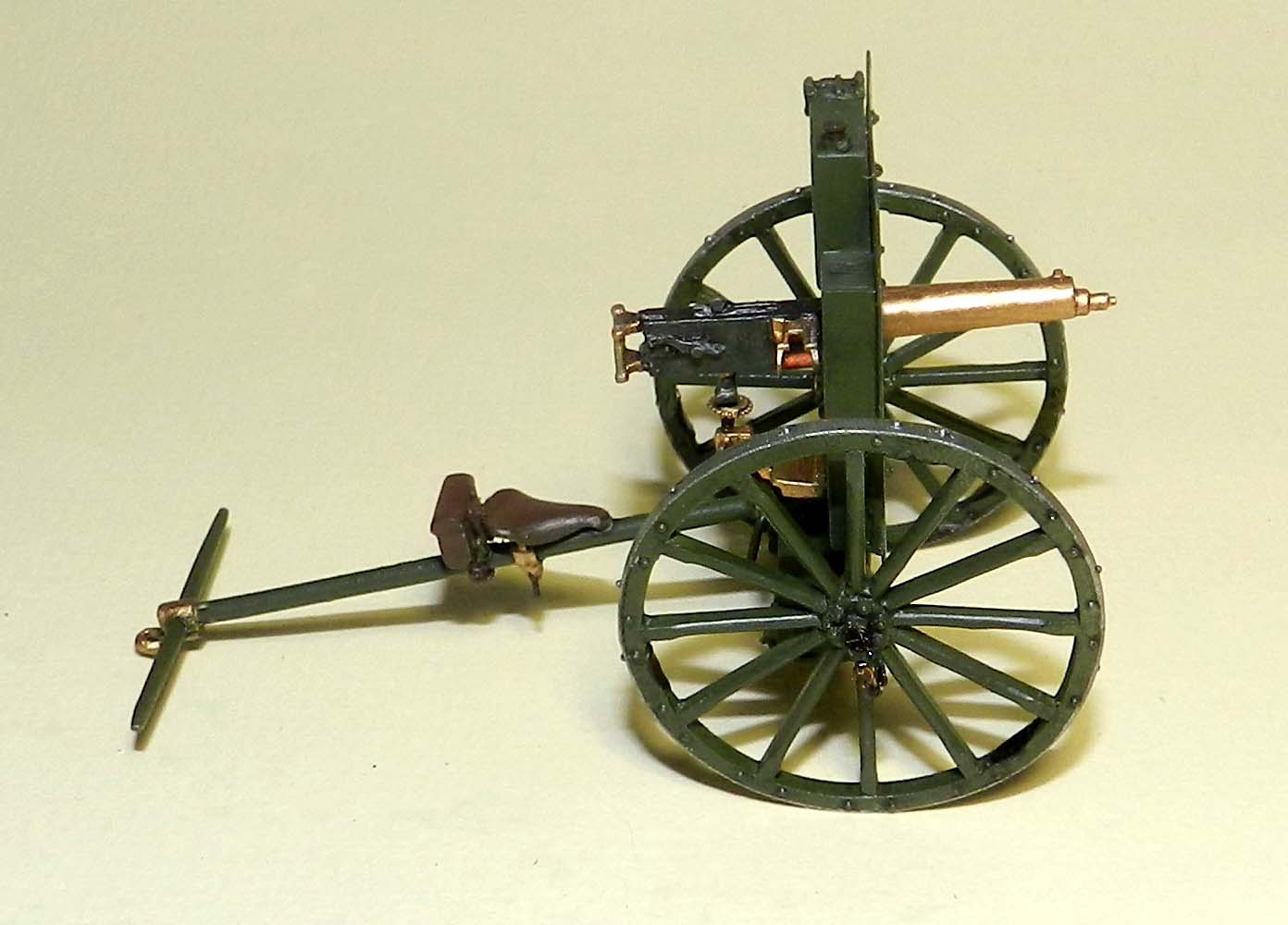 Ланской Олег,Спасибо Олег. Модель отправлена заказчику. Человек создаёт тему артиллерии Порт-Артура. Думаю что стоять будет одиноко на подставке. У же места не хватает.Модель конечно можно было сделать лучше. но уже зрение не то. Да детали мелковаты. А пулемёт с расчётом на позиции был бы хорош конечно. Готовлю статью по этому пулемёту и его модификациям. Интересные вещи нашёл при работе над чертежами.