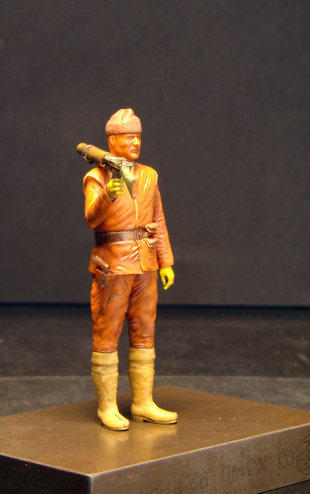 Igmar, ИМХО человек который держит (наверняка!) тяжелый пулемет должен стоять в другой позе.Наверное-опираясь на левую,а правая чуть согнута.А он у вас как часовой.Ну это мое субъективное мнение.Еще раз повторюсь фигурка очень хорошая.