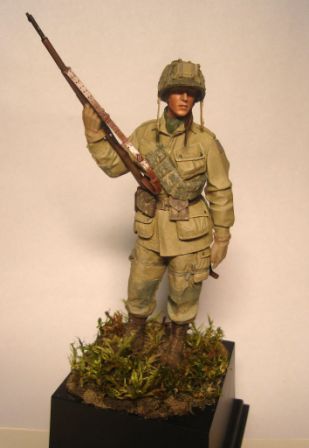 Танкиста расписывал темперой, парашютиста - акрилом Вальехо. Открытые участки тела, кожанная аммуниция - масло, металлики - худ.акрил. Ну и пигментами попылил. остались кое-какие мелочи, после чего - прямая дорога им в галерею.