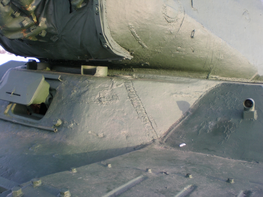 Если предположить, что танк комплектный = то широкая маска орудия на корпусе с "ломаным носом" это ни как не признак ранних машин, наоборот, не ранее лета 44-го.