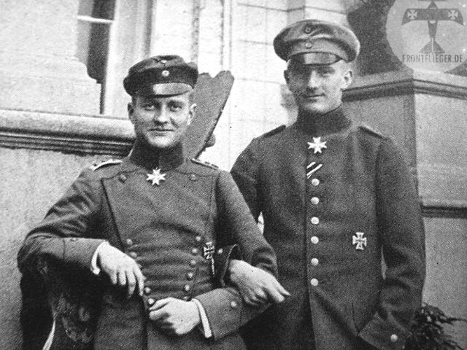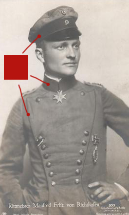 Воздушные силы Рейхсвера формировались из волонтёров различных родов войск. Мундиры молодого Геринга и Удета -похожи потому что они пришли в авиацию из пехоты, а вот Красный барон из кавалерии. Об этом говорит и крой его мундира с двумя рядами пуговиц. И вот как раз в кавалерии (у улан) и были красные воротники.