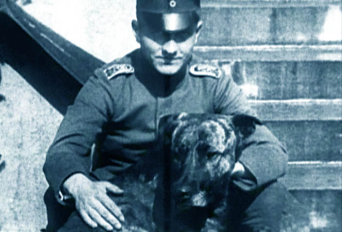 В пользу моей версии о коричневых ботинках и чёрных гамашах (пардон, я не знаю как верно назвать этот аксесуар, если знаете- подскажите) говорит вот это хорошо сохранившееся фото лётчика с догом Морицем. Посмотрите на разность чёрного цвета.
